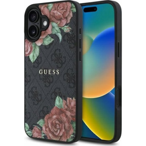 1 kép Guess GUHMP16SP4ROPEMCK 4G Flowers Print Magsafe-Kompatibilis Tok iPhone 16 - Fekete (3666339350093)