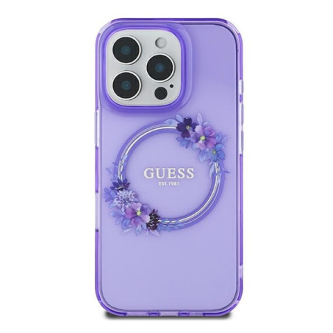 1 kép Guess IML Flowers Wreath iPhone 16 MagSafe kemény hátlap tok, lila GUHMP16SHFWFCU