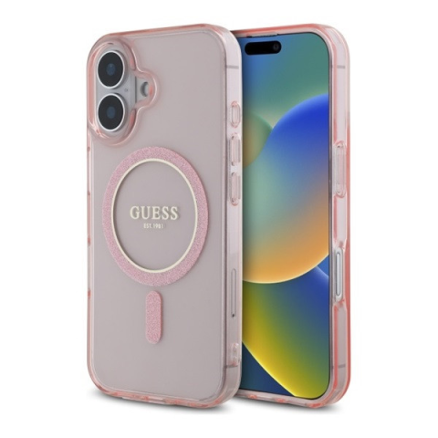 1 kép Guess IML Glitter Circle iPhone 16 MagSafe hátlap tok, rózsaszín GUHMP16SHFGEREP