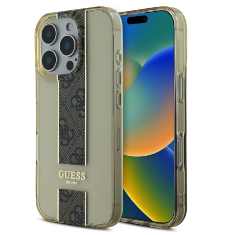 1 kép Guess IML Middle 4G Stripe iPhone 16 Pro kemény hátlap tok, barna