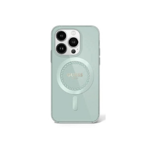 1 kép Guess IML Rhinestones MagSafe iPhone 16 Pro kemény hátlap tok, zöld GUHMP16LPFTDTEN