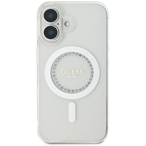 Guess IML Rhinestones Ring MagSafe iPhone 16 White tok (GUHMP16SPFTDTEH) tok és táska 1 kép