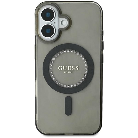 1 kép Guess IML Rhinestones Ring MagSafe Zadní Kryt pro iPhone 16 Black