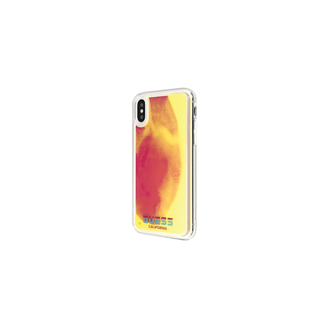 1 kép Guess iPhone X/XS sötétben világító tok, rózsaszín, sárga homokkal (GUHCPXGLCPI)