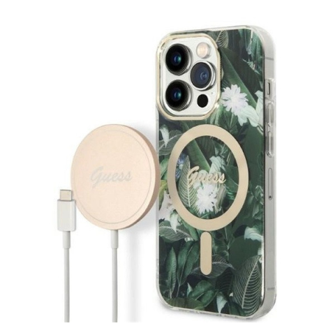 1 kép Guess Jungle MagSafe Apple iPhone 14 Pro hátlap tok, zöld + MagSafe töltő