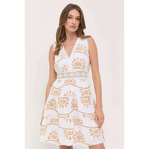 Guess Nadia Női V-nyakú Hímzett Miniruha - Fehér, S méret ⚪️🌼 Ez a Guess Nadia miniruha tökéletes választás a nyári napokra! Kényelmes, légáteresztő pamut anyagból készült, gyönyörű hímzéssel díszítve. A V-nyakú kivágás elegáns megjelenést kölcsön...