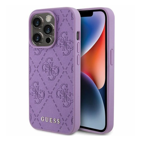 1 kép Guess Leather 4G Stamped Apple iPhone 15 Pro hátlap tok, lila