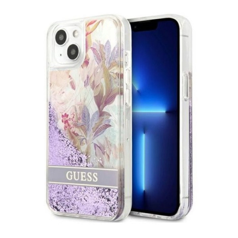 1 kép Guess Liquid Glitter Flower Apple iPhone 13 mini hátlap tok, lila