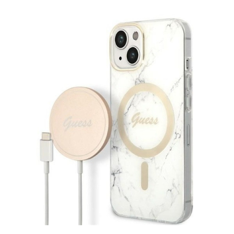 1 kép Guess Marble MagSafe Apple iPhone 14 hátlap tok fehér + MagSafe töltő