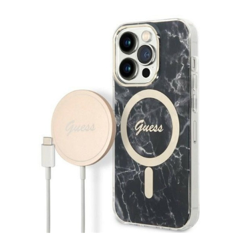 1 kép Guess Marble MagSafe Apple iPhone 14 Pro Max hátlap tok, fekete + MagSafe töltő