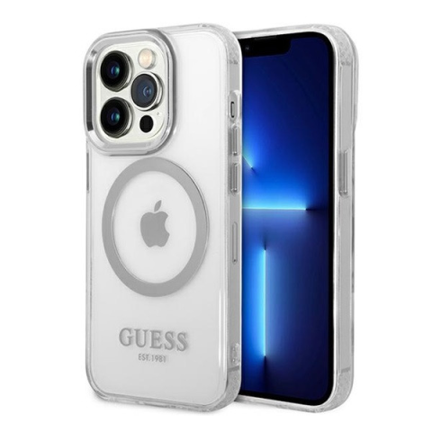1 kép Guess Metal Outline Magsafe Apple iPhone 14 Pro Max hátlap tok, ezüst