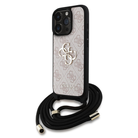 1 kép Guess PU 4G Metal Logo Crossbody Strap iPhone 15 Pro hátlap tok, rózsaszín