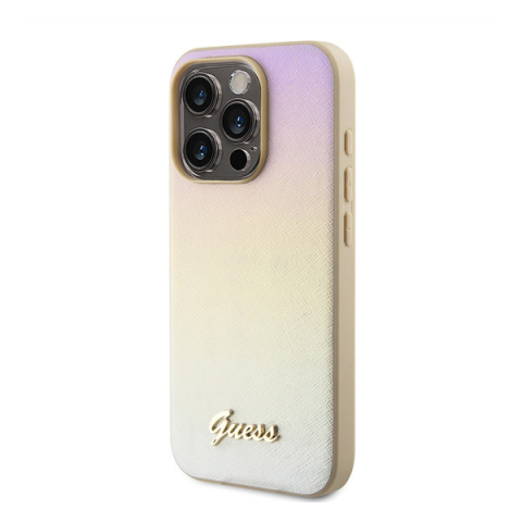 1 kép Guess PU Leather Iridescent Metal Script iPhone 15 Pro tok, arany