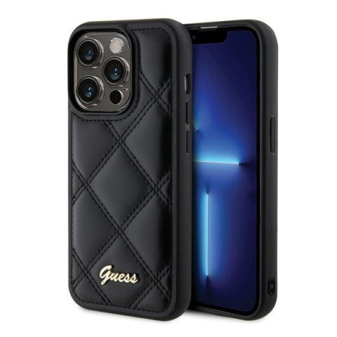 Guess Quilted Metal Logo Apple iPhone 15 Pro Max hátlap tok, fekete
