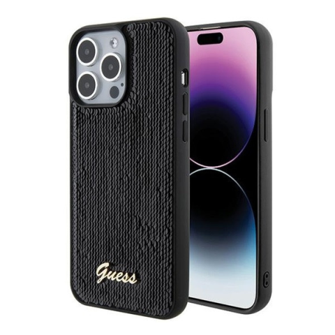 1 kép Guess Sequin Script Metal Apple iPhone 15 Pro Max hátlap tok, fekete