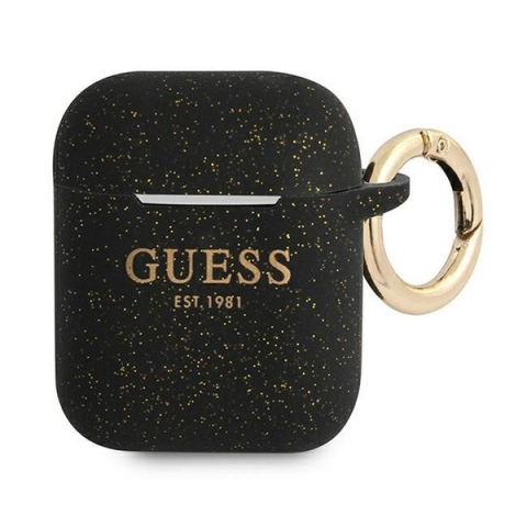 Guess Silicone Glitter Apple AirPods 1/2 tok, fekete fülhallgató, fejhallgató tok 1 kép