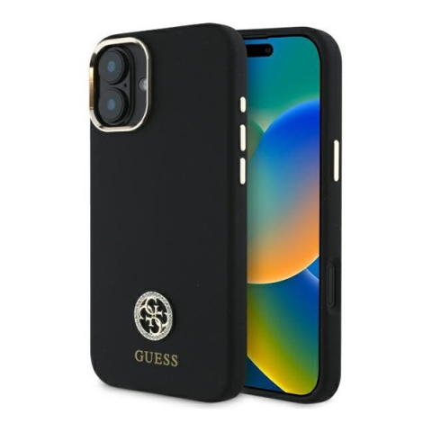 Guess Silicone Logo Strass 4G iPhone 16 hátlap tok, fekete GUHCP16SM4DGPK