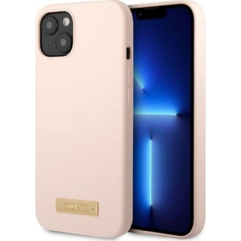 Guess Silicone Metal Logo MagSafe Apple iPhone 13 hátlap tok, rózsaszín (GUE002489)