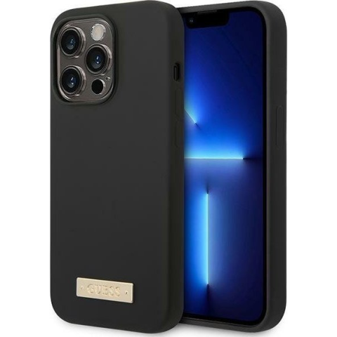 Guess Silicone Metal Logo MagSafe Apple iPhone 14 Pro hátlap tok, fekete (GUE2043)