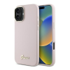 Guess Silicone Script Metal Logo & Frame iPhone 16 hátlap tok, rózsaszín GUHCP16SSMBSLP