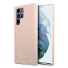 Guess Silicone Script Metal Samsung Galaxy S23 Ultra szilikon tok, rózsaszín