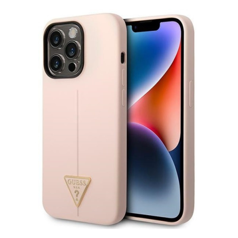 Guess Silicone Triangle Apple iPhone 14 Pro hátlap tok, pink