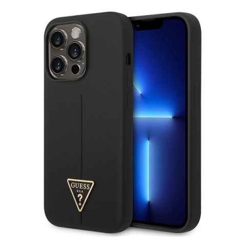 Guess Silicone Triangle Apple iPhone 14 Pro Max hátlap tok, fekete