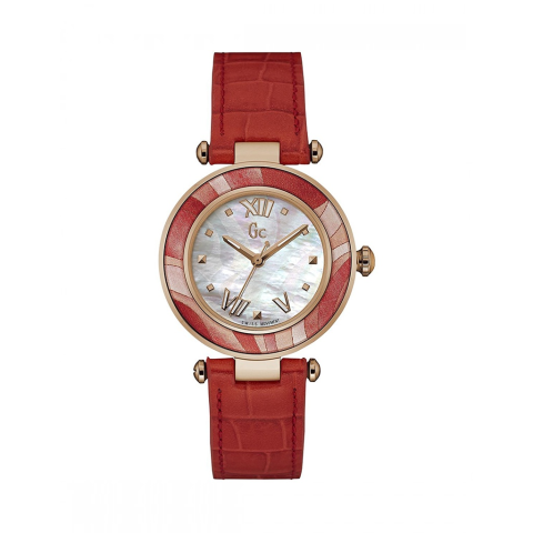 Márka: GC by GuessTípus: óraNem: nőiTok átmérő: 36 mmTok anyaga: rozsdamentes acélTok szín: aranySzíj anyaga: bőrSzíj szín: vörösSzerkezet: kvarcKijelzés: analógÜveg: ásványiVízállóság: 30 ...