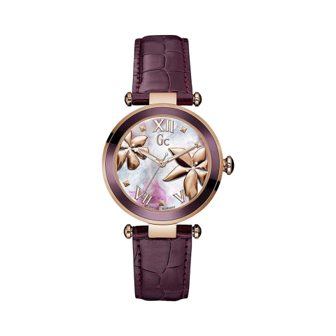 Márka: GC by GuessTípus: óraNem: nőiTok átmérő: 36 mmTok anyaga: rozsdamentes acélTok szín: aranySzíj anyaga: bőrSzíj szín: padlizsán lilaSzerkezet: kvarcKijelzés: analógÜveg: ásványiVízállóság: ...