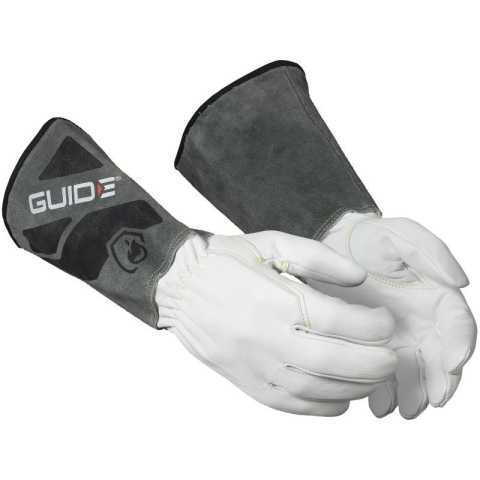 GUIDE 1270 Munkavédelmi kecskebőr hegesztő kesztyű 9 Hegesztőkesztyű tartós és puha fedett kecskebőrből a tenyérrészen és a kézfejrészen. TIG hegesztéshez alkalmas. A csuklórész hasított marhabőrből, belül vékony pamutszövetből, a varratok pedig hőáll