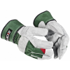 Erős, félig bélelt kesztyű marhabőrből. A kesztyű biztonsági mandzsettával, tenyerén pamutbéléssel, az ujjakon és az ökölcsonton erősítéssel van ellátva.