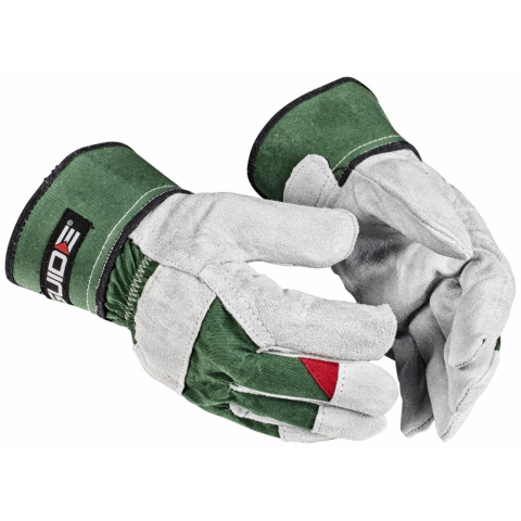 Erős, félig bélelt kesztyű marhabőrből. A kesztyű biztonsági mandzsettával, tenyerén pamutbéléssel, az ujjakon és az ökölcsonton erősítéssel van ellátva.