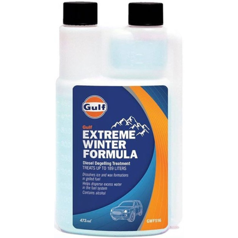 Dízel zselétlenítő adalék 473 milliliteres kiszerelésben A Gulf extrém téli formula egy vészhelyzeti dízel üzemanyag kezelő, amely úgy lett kialakítva, hogy feloldja a bezselésedett üzemanyagokban a jég- és waxképződményeket. Ez az erőteljes formula kb. 20 percen belül visszaállítja az üzemanyagáramlást. Egy flakon Gulf extrém téli formula tartása járműve tárolórészében egy nem drága biztosítás a fagyos hőmérséklet miatti elakadás ellen, ami költség