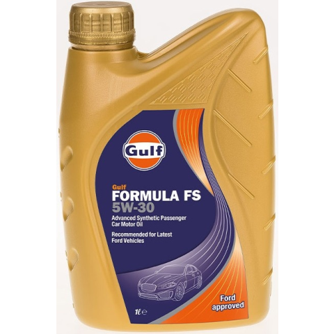 Szintetikus személyautó motorolaj 1 literes kiszerelésben A Gulf Formula FS 5W-30 a legújabb generációjú szintetikus személyautó motorolaj, amit azon összes Ford járműre vonatkozó szigorú előírásoknak történő megfelelőségre terveztek, melyek megfelelnek a jelenlegi EURO 4 és EURO 5 emissziós normáknak és a legújabb Ford WSS-M2C913-D specifikáció által jóváhagyott minőségű olajokat igényelnek. A továbbfejlesztett összetétel kiemelkedő védelmet nyújt a ko