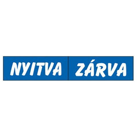 Információs tábla, 22x8,5 cm, kétoldalas, Nyitva/Zárva, kék Nyitva/Zárva információs tábla - kék alapon fehér szöveg - anyaga: hullámos műanyaglemez, damil akasztóval - mérete: 22x8,5 cm