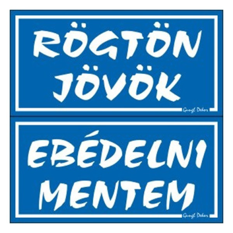 1 kép GUNGL DEKOR Piktogram Rögtön jövök-ebédelni mentem (kétold. tábla) kék