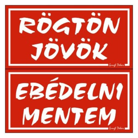 1 kép GUNGL DEKOR Piktogram Rögtön jövök-ebédelni mentem (kétold. tábla) piros