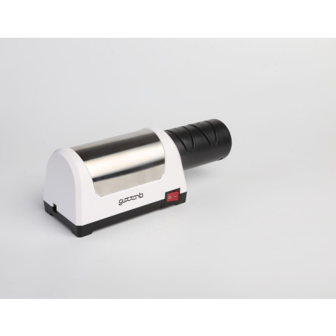 Elektromos késélező - elektromos, segítségével élezhető kerámia és acél, 4 élező fokozat, hálózati tápellátás, 240 V bemeneti feszültség, gyémánt élezőfelület, élezőfelület méretei 8,1 × 20 cm (H×Sz), fogantyú anyaga rozsdamentes acél, teljes méret 8,1 × 20 × 12,2 cm (H×Sz×Ma), tömege 990 g A késélezés még soha nem volt ilyen egyszerű! A Guzzanti márka elektromos gyémánt köszörűköves késélezőjét acél és kerámia kések élezésére tervezt