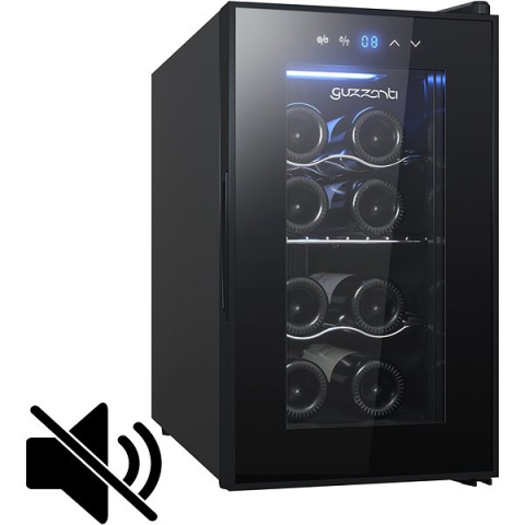 Borhűtő - E energiaosztályú, 8 palack számára, belső térfogata 21 l, 3 polcos, kijelző és megvilágítás, 8-18 °C között szabályozható hőmérséklet, 35 dB zajszinttel, jobbos nyitásirány, mérete 47,5 × 26,5 × 51 cm (Ma×Sz×Mé), tömege 11,3 kg, fekete színű A szabadonálló GUZZANTI borhűtőben a lehető legjobb minőségben raktározhatod el a kedvenc borodat. A borhűtő belső klímája stabil környezetet garantál a borok számára, valamint az egyes borfajták