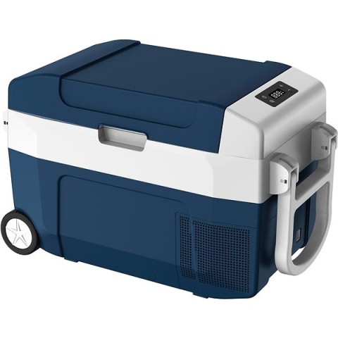 Autós hűtőláda - kompresszoros, 12 V, 24 V és 230 V tápellátás, űrtartalma 35l, hűtési tartomány -18 - 20°C, autó akkumulátor lemerülés elleni védelem, kijelző és kerekek, melegítés funkció akár 50°C hőmérsékletre, ECO üzemmód, 12 V-os kábel hossza 350cm, 230 V-os kábel hossza 220cm, zajszint 56dB, 70W teljesítmény, tömege 15,5kg, AC töltőadapter és DC töltőadapter a csomag része, fehér és kék kivitel, D energiaosztály Guzzanti GZ 35A kompresszoros au