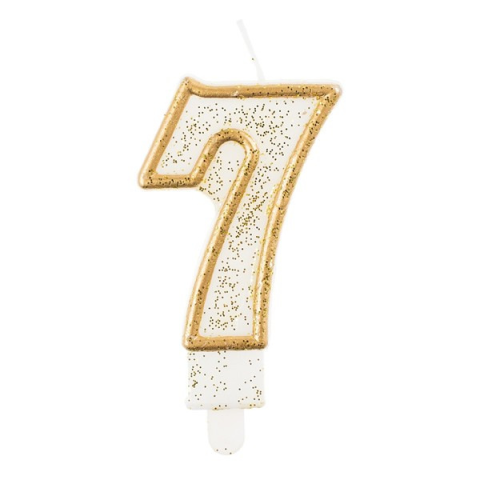 1 kép Gyertya & Decor Számgyertya fehér alapon aranyozott színű 7-es