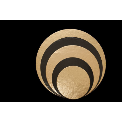 Tortaalátét, Black and Gold kollekció, kerek, 24 cm, 10db tortaalátét / tortakarton, kerek, 24 cm, 3 mm; laminált, olaj- és zsiradékálló felület. Stabil, higiénikus alap díszítéshez és szállításhoz. A 24 cm-es, kerek prémium tortaalátét (tortakart