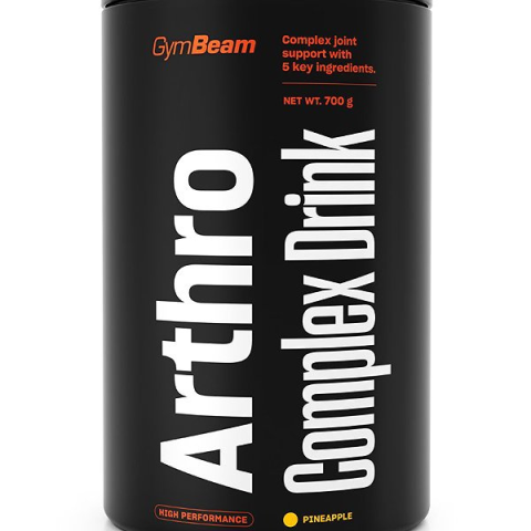 Ízület erősítő - glükozamin-szulfát (1500 mg), MSM (1200 mg) és kondroitin-szulfát (775 mg) kombinációja 1 kapszulában, C-vitamint és szarvasmarha-kollagént tartalmaz, ananász ízű, oldódó por, 700 g GymBeam ArthroComplex Drink, ananász700 gAz ArthroComplex Drink egy komplex táplálék az ízületek számára jól oldódó por formájában. A termék glükozaminból, kondroitinből és MSM-ből áll. Ezeket kollagé