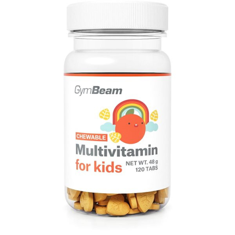 Multivitamin -gyermekeknek szánt szopogatótabletta, A-vitamint, D, E-, K-, teljes B-komplex és C-vitamin tartalmaz, finom narancsos íz GymBeam Multivitamin120 tablettaA gyermekeknek szánt multivitamin rágótabletták A-, D-, E-, K-vitamint, komplett B-komplexumot és C-vitamint tartalmaznak. Segítenek az alapvető mikrotápanyagok bevitel