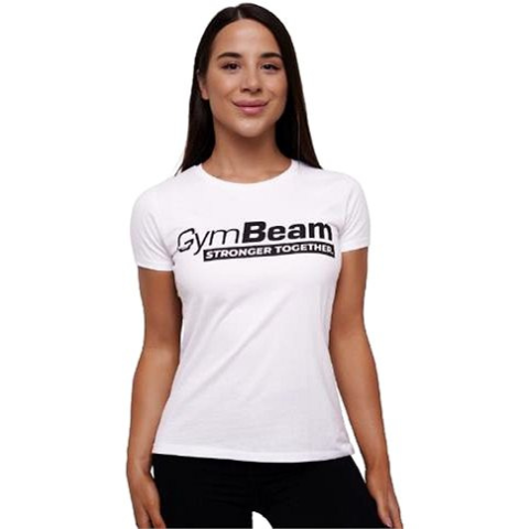 Póló lenyomattal - női, rövid ujjú, kerek nyakkivágás, S méret, légáteresztő, anyaga pamut, fehér színben A kényelmes GymBeam Női póló, Stronger Together White, S legfontosabb tulajdonságai Az időtálló GymBeam póló sokoldalú és alkalmas hétköznapi viselethez és sporttevékenységekhez is Az előállításához h