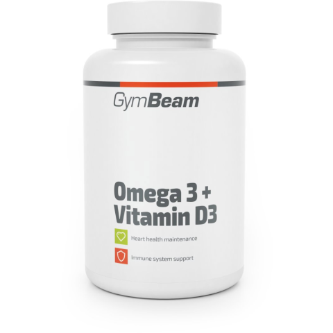 Omega 3 - 90 kapszula, 180 mg EPA és 120 mg DHA egy kapszulában, tartalma d-vitamin, alkalmas felnőtteknek GymBeam Omega-3 + D3-vitamin90 kapszulaAz Omega-3 + D3-vitamin az egészséges zsírok hatékony kombinációja omega-3 zsírsavak és D3-vitamin formájában. Eikozapentaénsavat (EPA) és dokozahexaénsavat (DHA