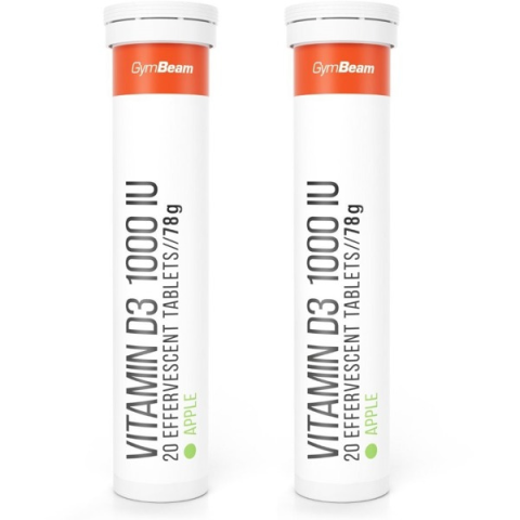 D3 vitamin - D-vitamin, 25 µg (1000 NE) 1 pezsgőtablettában, zöld alma íz, 2 × 20 darab tabletta GymBeam Pezsgő D3-vitamin 1000 IU, zöld alma ízű2 × 20 tablettaA pezsgő D3-vitamin 1000 IU tabletta kolekalciferol formában tartalmazza a D-vitamint. A D-vitamin önmagában hozzájárul az immunrendszer