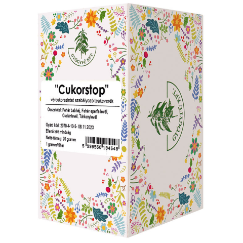 Gyógyfű cukorstop (vércukorszintet szabályozó teakeverék) 20x1g 20 g CUKORSTOP – VÉRCUKORSZINTET SZABÁLYOZÓ TEAKEVERÉK MIT TUDHATUNK A NÖVÉNYEKRŐL? A teakeverék egyedi összeállítású. A népgyógyászati tapasztalatok és az ezeket igazoló legújabb tudomá