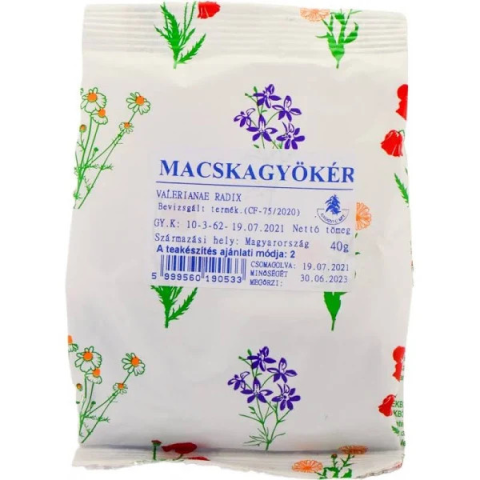 Gyógyfű macskagyökér 40 g Ideg- és szívnyugtató, görcsoldó. Serkenti az emésztést, és gyakran alkalmazzák fejfájás, álmatlanság, alvászavarok esetén is. Enyhíti az idegességet, így idegerősítőként kiváló gyógynövény. Gyomorsavtúltengés, puffadások idej