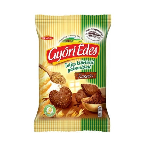 Győri Édes teljes kiőrlésű keksz kakaós 150 g GYŐRI ÉDES TELJES KIŐRLÉSŰ KEKSZ KAKAÓS. A Győri Édes keksz 100%-ban természetes összetevők felhasználásával készül. Receptúrája kizárólag természetes anyagokat tartalmaz, így gondtalanul élvezheti a megszo